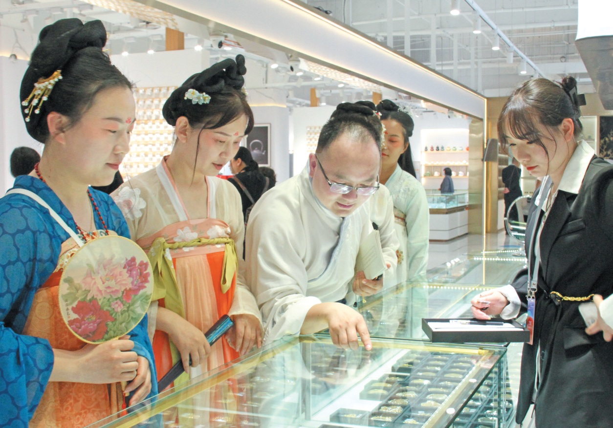 4月18日,2023第二屆中國(guó)濟(jì)源·國(guó)際白銀文化博覽會(huì)開幕。其間,精心策劃的中國(guó)濟(jì)源·國(guó)際白銀產(chǎn)業(yè)博覽會(huì)現(xiàn)場(chǎng)人頭攢動(dòng),熱鬧非凡。八方賓客賞珍寶、購(gòu)飾品,氛圍濃厚。(本報(bào)記者 王鴻斐 攝)