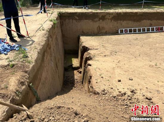一座正在發(fā)掘的墓葬。