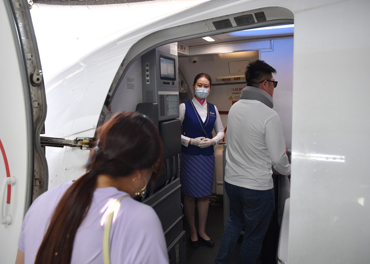 5月13日,旅客登上西安-烏魯木齊-阿什哈巴德首趟航班。當(dāng)日,西安至土庫(kù)曼斯坦首都阿什哈巴德的國(guó)際航線首飛。5月18日西安還將首開(kāi)至塔吉克斯坦首都杜尚別的國(guó)際航線。新華社記者 邵瑞 攝
