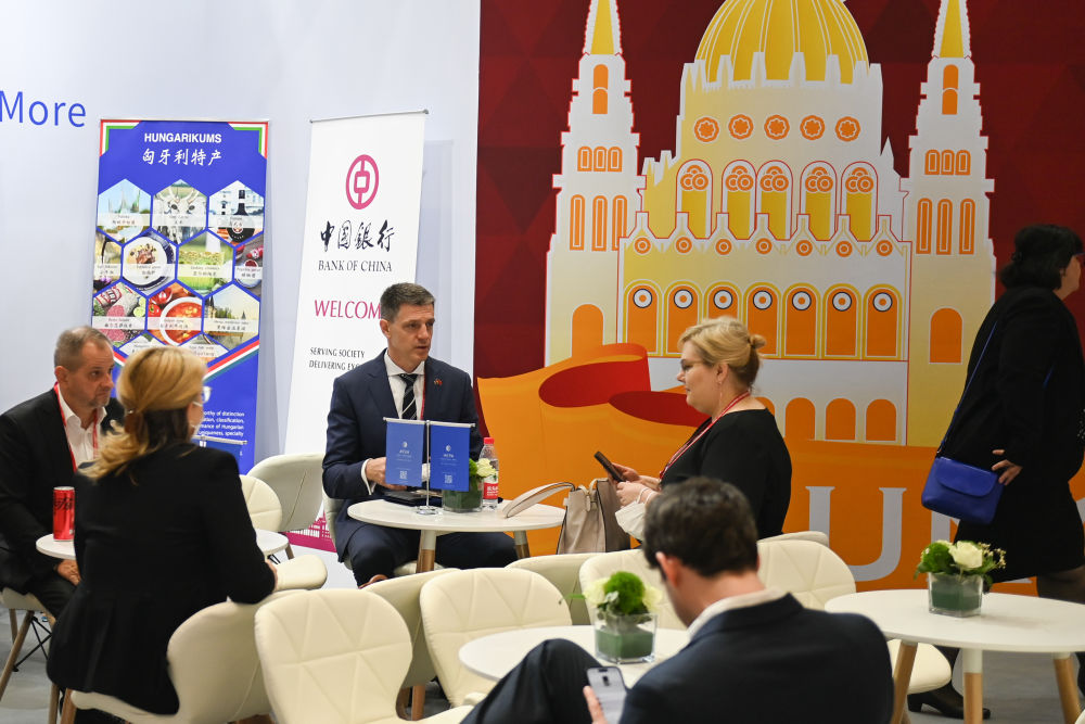 外國企業(yè)代表在第三屆中國—中東歐國家博覽會暨國際消費(fèi)品博覽會中東歐展館洽談(5月16日攝)。新華社記者 黃宗治 攝