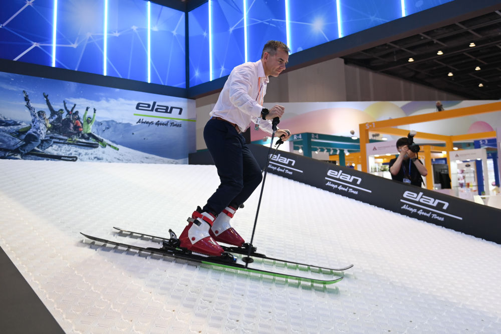 在第三屆中國—中東歐國家博覽會暨國際消費(fèi)品博覽會中東歐展館,來自斯洛文尼亞的企業(yè)代表現(xiàn)場展示雪具產(chǎn)品(5月16日攝)。新華社記者 黃宗治 攝