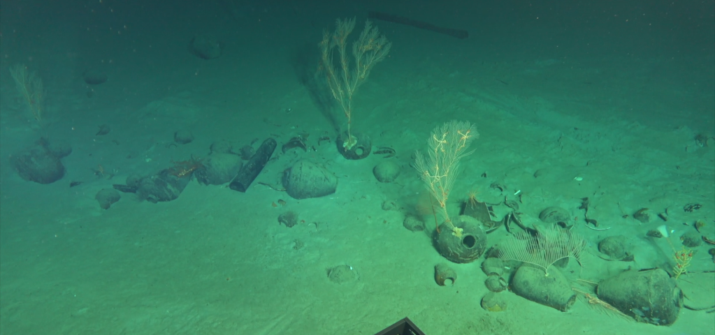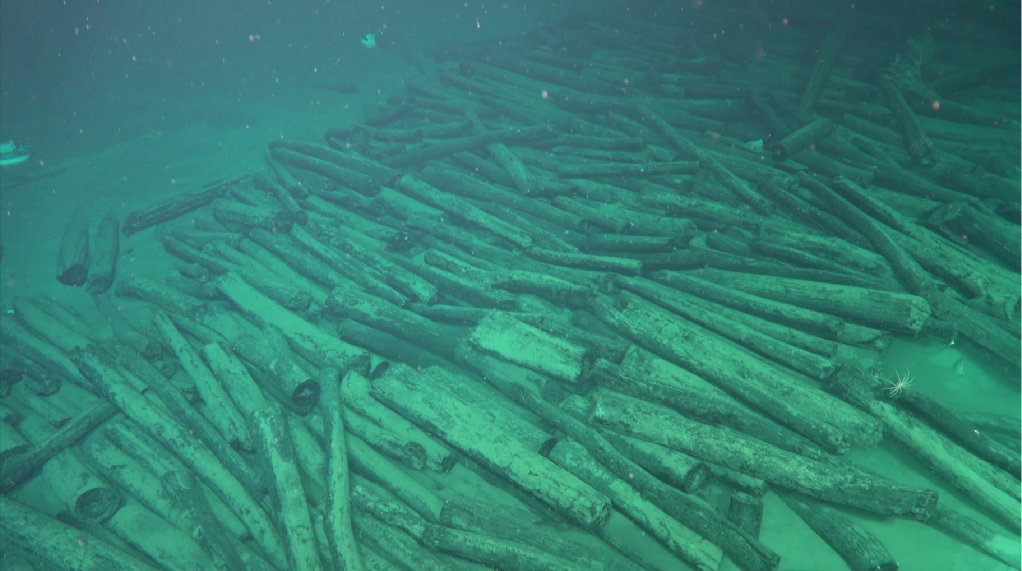 據(jù)國家文物局考古司司長閆亞林介紹,其中一處定名為南海西北陸坡一號沉船,有多個疑似被船艙分隔開的成堆文物,最大高度達(dá)3米多,文物以瓷器為主,散落范圍達(dá)上萬平方米,推測數(shù)量超過十萬件,根據(jù)出水文物初步判斷為明代正德年間。另一處定名為南海西北陸坡二號沉船,發(fā)現(xiàn)大量原木,尺寸相近、碼放整齊,大多經(jīng)過簡單加工,初步研判是從海外裝載貨物駛往中國的古代沉船,初步判斷為明代弘治年間。