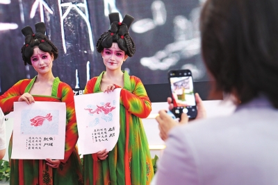 唐宮夜宴小姐姐在河南館門口展示特色印章