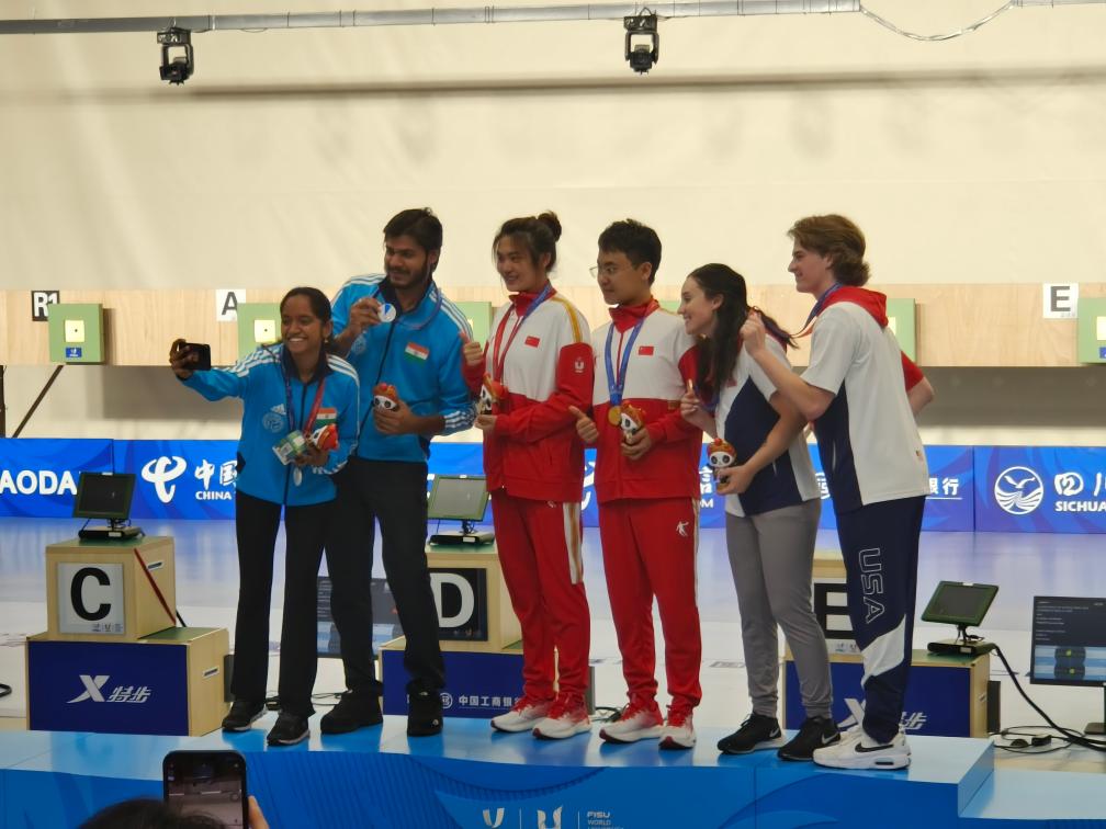 新華社成都8月2日電 成都大運(yùn)會開賽以來,中國大學(xué)生體育代表團(tuán)捷報(bào)頻傳。2日,中國隊(duì)有9枚金牌入賬,以36金12銀12銅的成績繼續(xù)領(lǐng)跑金牌榜。射擊賽場上演暖心一幕,印度女選手瓦拉里萬在全場的祝福聲中度過了一個終生難忘的生日。