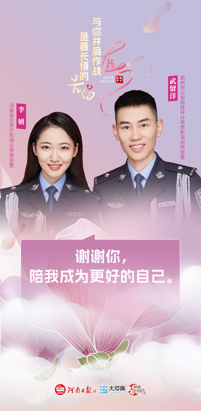 “共同的職業(yè),共同的信念,是她陪著我成長為更好的自己。”說起妻子李妍時,鄭州市公安局經(jīng)開分局京航派出所民警武留洋滿眼笑意,“我們是大學同學,她現(xiàn)在在河南省公安廳機場公安局工作。今年,我們有了一個非??蓯鄣呐畠骸!?/p>