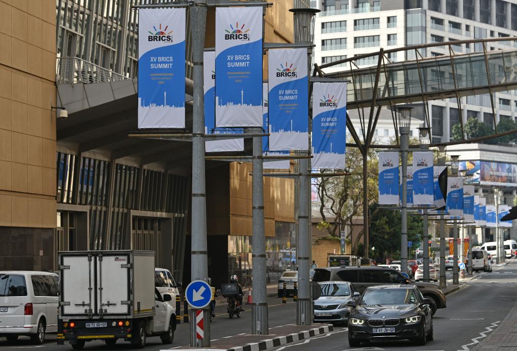 這是8月17日在南非約翰內(nèi)斯堡拍攝的金磚峰會(huì)條幅。金磚國(guó)家領(lǐng)導(dǎo)人第十五次會(huì)晤將于南非約翰內(nèi)斯堡舉行。新華社記者 陳誠(chéng) 攝