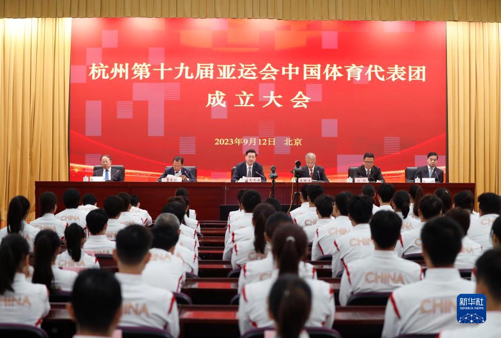 9月12日,杭州第19屆亞運會中國體育代表團成立大會在北京召開。新華社記者 賈浩成 攝
