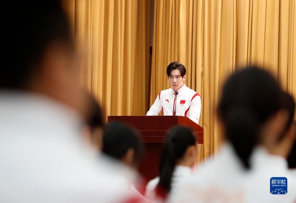 9月12日,運動員代表、中國體操運動員張博恒在成立大會上發(fā)言。新華社記者 賈浩成 攝