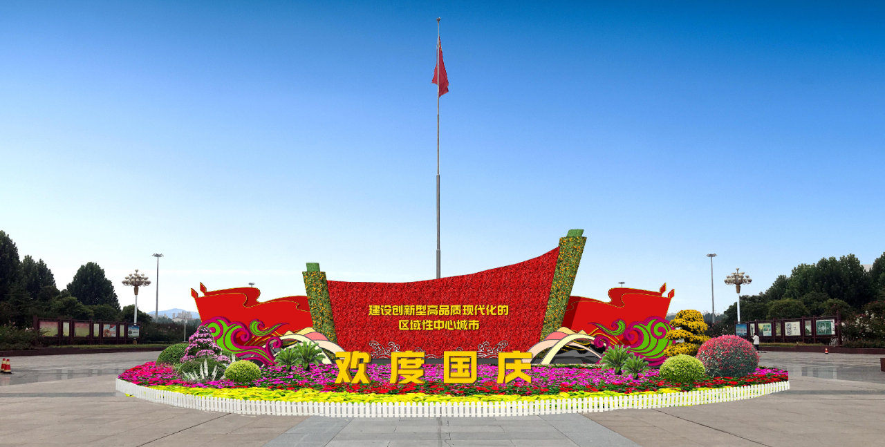 在世紀廣場東入口,記者看到工人們正在進行主體花架組裝、裝飾、擺花……經(jīng)過半天的緊張施工,一個立體造型與平面布置組合而成的“揚帆新時代 奮進新征程”主題花壇已見雛形,引人注目,烘托出熱鬧喜慶的節(jié)日氣氛。示范區(qū)住建局園林綠化中心園林工程師苗先軍介紹,這個花壇頂高6米,以卷軸為主景,卷軸左低右高,又像帆船,寓意揚帆起航;周圍配置2棵鐵樹,4棵三角梅,擺放矮牽牛等8個品種草花2.7萬余盆,整體花團錦簇,象征著在黨的領(lǐng)導(dǎo)下,偉大祖國繁榮富強的美好景象。