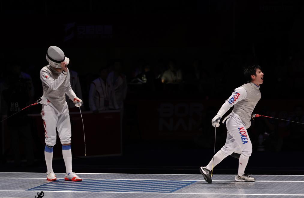 中國男子花劍隊當日有驚喜有遺憾。團體半決賽面對世界排名第一、今年世錦賽和亞錦賽上均摘得金牌的日本隊,中國隊以45:44逆轉(zhuǎn)險勝對手,但在決賽中以38:45不敵衛(wèi)冕冠軍韓國隊。中國隊陳海威賽后說:“決賽我們都付出了所有,但還是比較遺憾?!?/p>