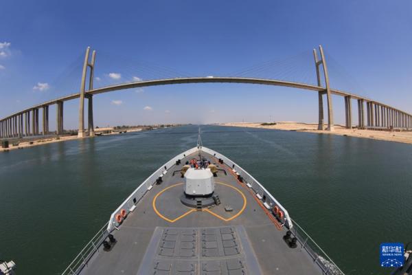 中國海軍第26批護航編隊航行通過蘇伊士運河(2017年9月2日攝)。新華社發(fā)(林健攝)