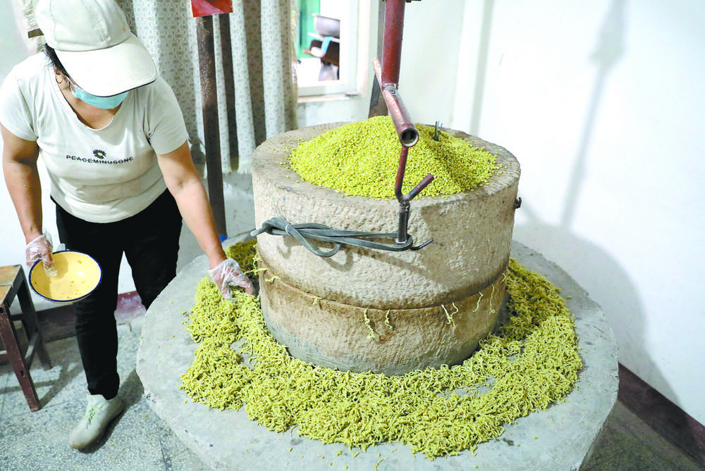 段長(zhǎng)生的女兒在磨制碾轉(zhuǎn)