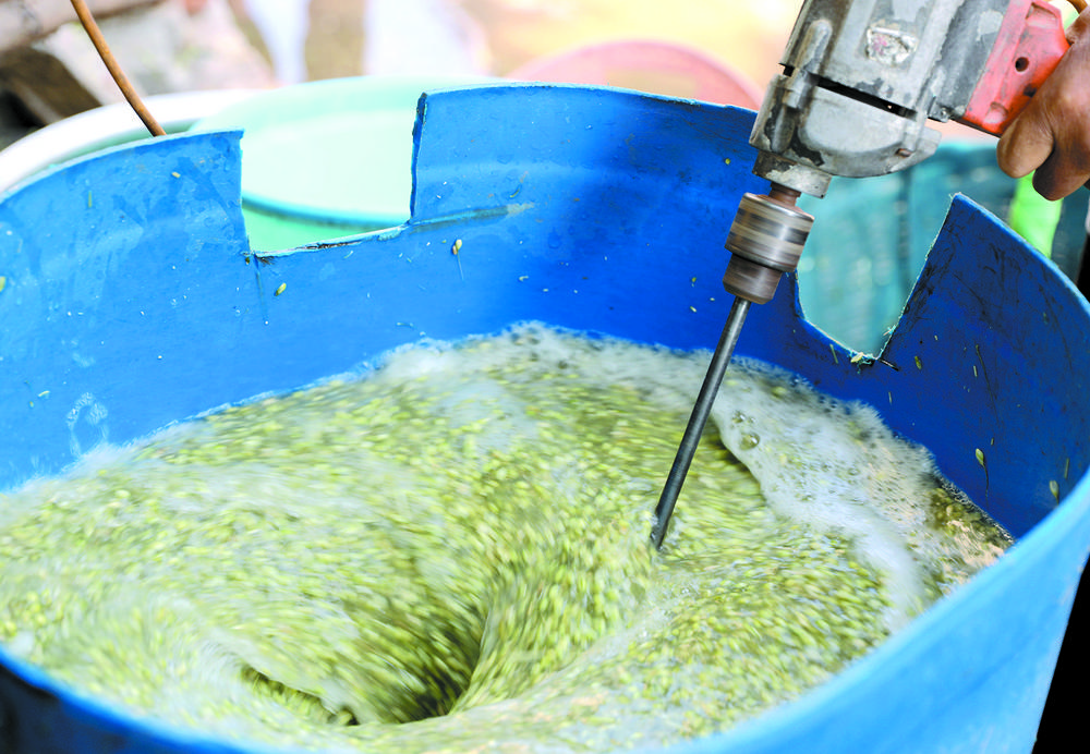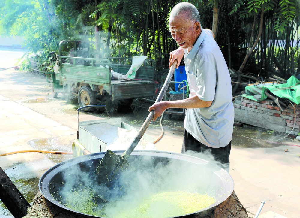 立夏過(guò)后,克井鎮(zhèn)大東許村的農(nóng)民便開(kāi)始了碾轉(zhuǎn)的制作。