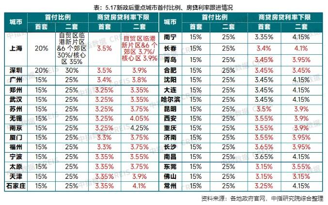 “近期各地政策的步調(diào)非常一致,充分落實(shí)‘517’降首付降利率的政策導(dǎo)向,充分體現(xiàn)房貸政策雙降是近期各地‘一城一策’的重要特點(diǎn)?!币拙友芯吭貉芯靠偙O(jiān)嚴(yán)躍進(jìn)認(rèn)為,各地政策的思路和邏輯非常清晰,近期普遍會出臺首付比例調(diào)至15%、房貸利率自由定價(jià)、三套房給予最優(yōu)信貸支持等政策,全國購房首付比例普遍進(jìn)入“15%時(shí)代”。