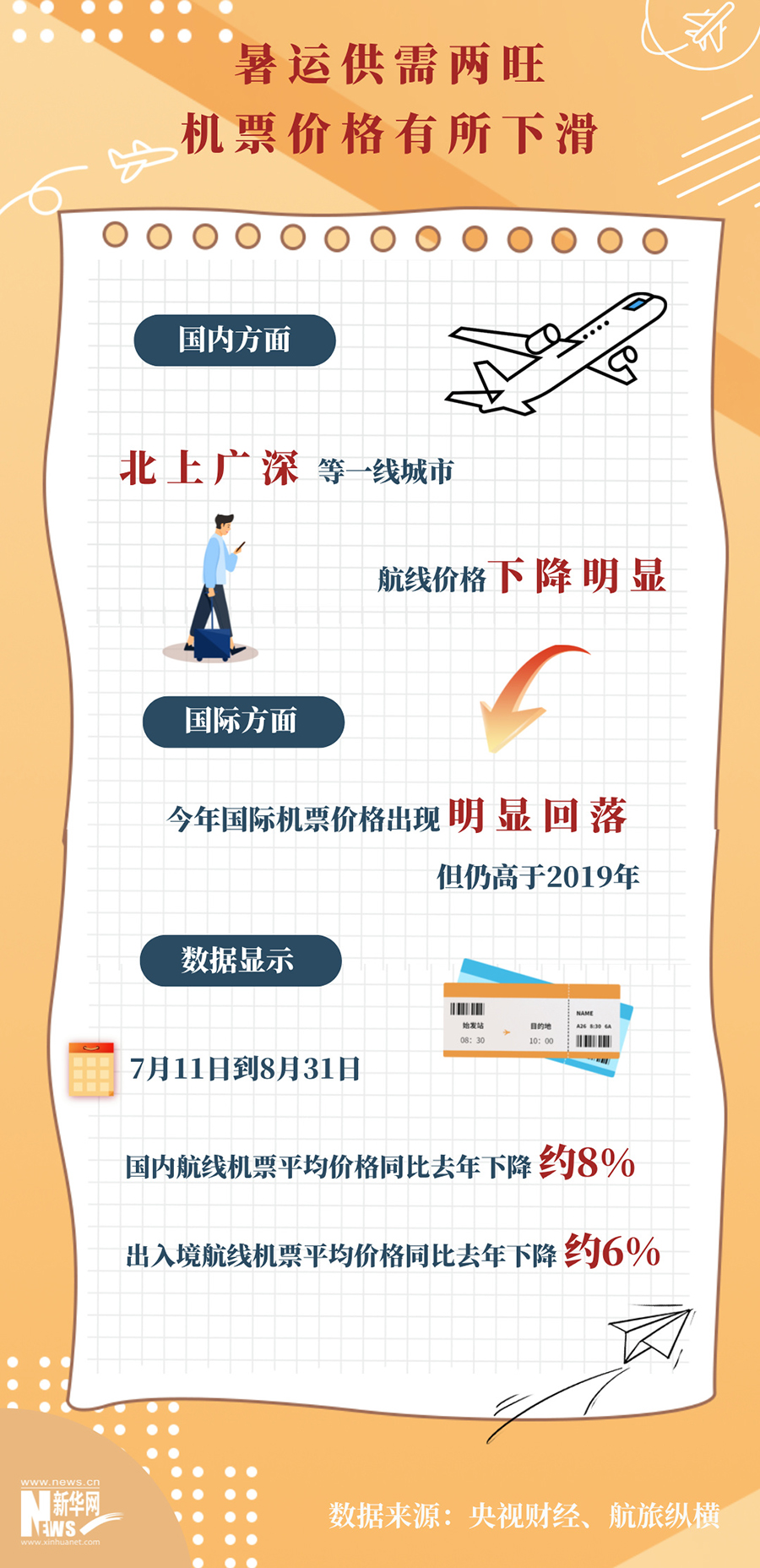 ??今年民航暑運(yùn)呈現(xiàn)出“供需兩旺”的格局,國(guó)內(nèi)及國(guó)際機(jī)票價(jià)格都有一定的回落。