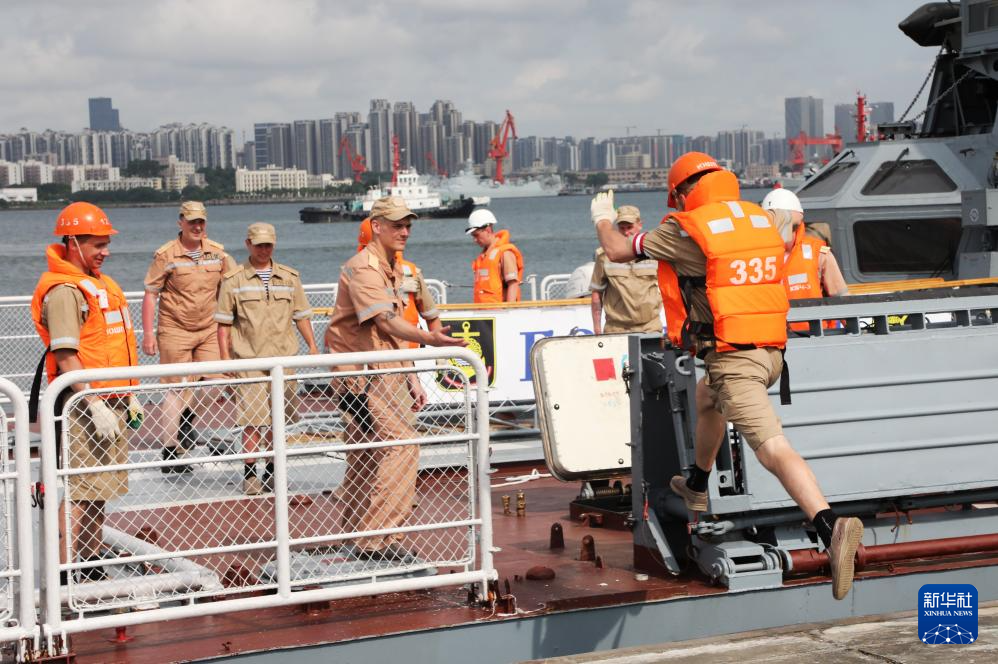 7月15日,俄“響亮”號護衛(wèi)艦正在離港。新華社發(fā)(王健 攝)
