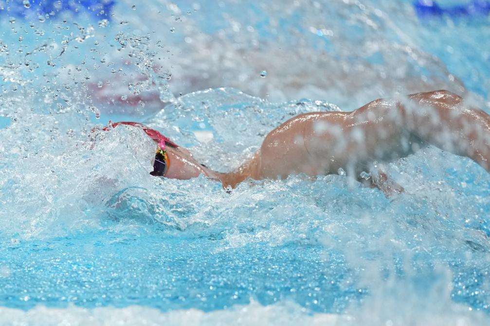 7月30日,中國選手潘展樂在男子100米自由泳預(yù)賽中。新華社記者 薛宇舸 攝