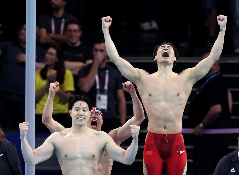 ??巴黎奧運會游泳賽場最后一個比賽日,男子4X100米混合泳接力決賽,當(dāng)潘展樂完成反超,幫助中國隊力壓壟斷該項目40年的美國隊和占盡主場優(yōu)勢的法國隊,以3分27秒46的成績奪冠時,現(xiàn)場的歡呼聲達到了頂峰。