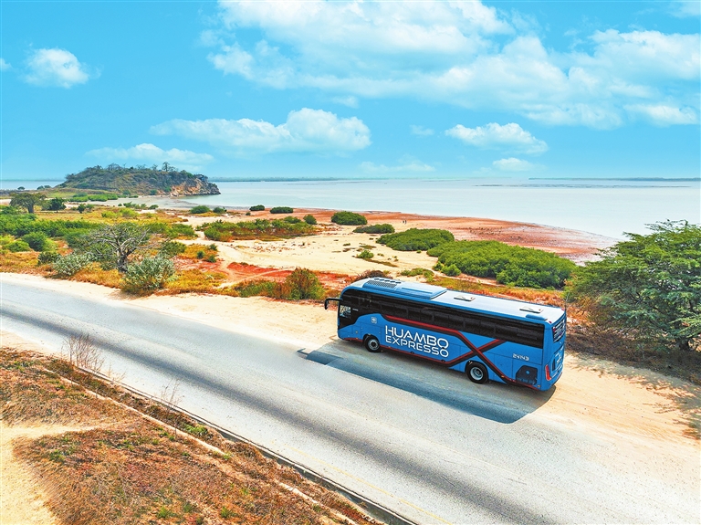 6月25日,在安哥拉沿海城市本格拉附近,一輛宇通客車正在行駛。 河南日報社全媒體記者 趙云翀 郭雙景 攝