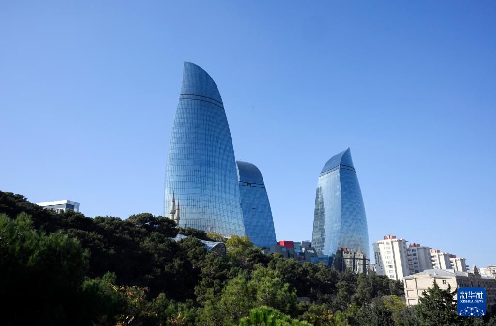 這是11月1日拍攝的阿塞拜疆巴庫(kù)地標(biāo)建筑之一——“火焰塔”。新華社發(fā)(托菲克·巴巴耶夫攝)
