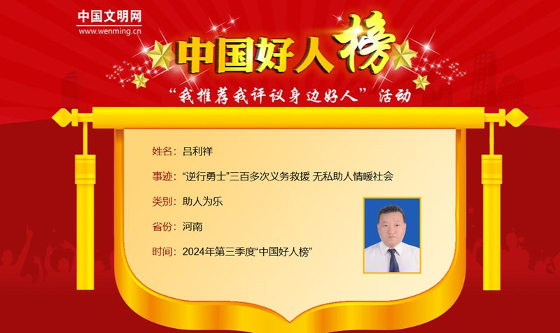 呂利祥上榜2024年第三季度“中國好人榜”。