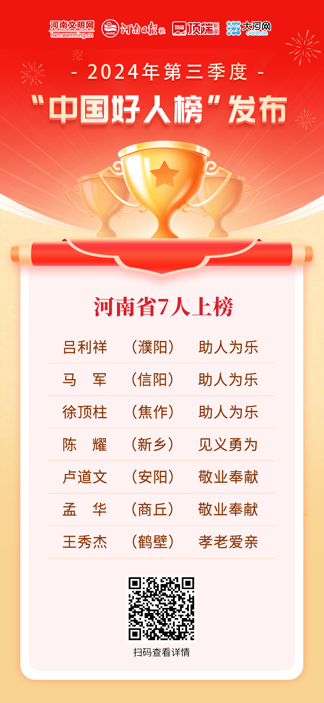 “我就想做一個平凡的好人”——河南7人榮登2024年第三季度“中國好人榜”