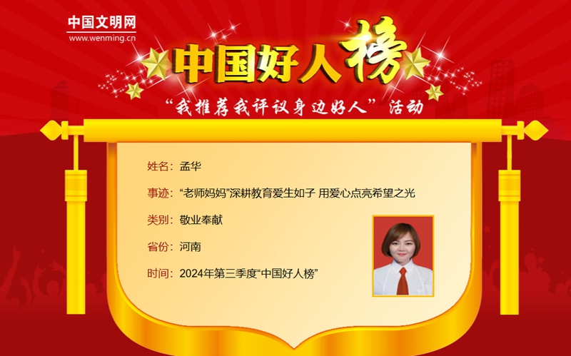 孟華上榜2024年第三季度“中國好人榜”。