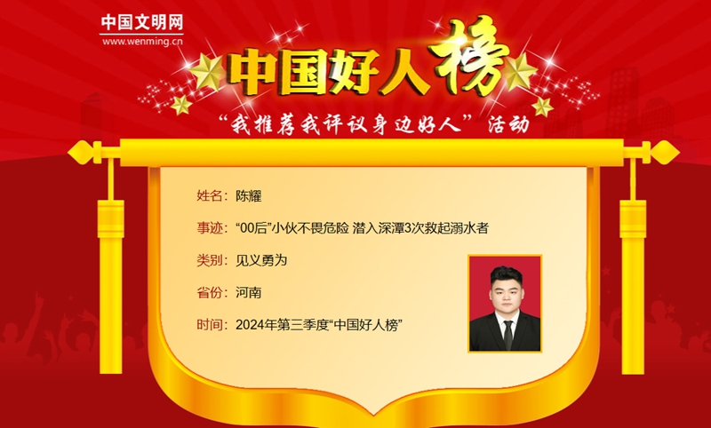 陳耀上榜2024年第三季度“中國好人榜”。