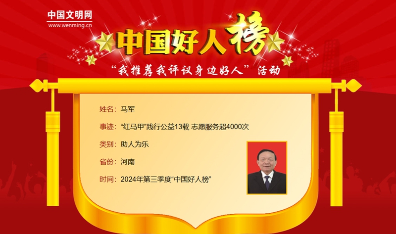 馬軍上榜2024年第三季度“中國好人榜”。