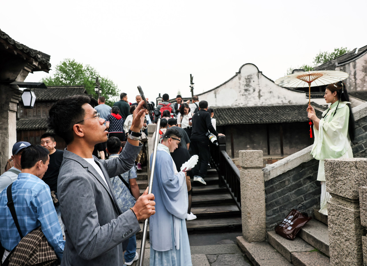 水鄉(xiāng)烏鎮(zhèn)吸引了大批網(wǎng)紅、播客、自媒體人。新華社記者 蘭紅光 攝