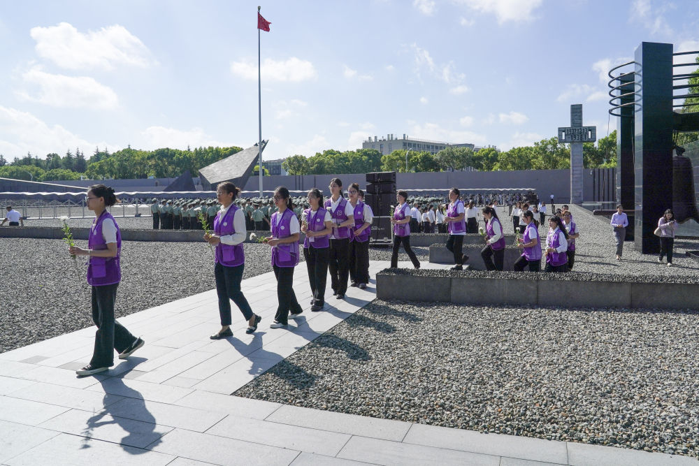 2024年9月18日,在侵華日軍南京大屠殺遇難同胞紀(jì)念館,社會各界代表排隊(duì)獻(xiàn)花。 新華社記者 李博 攝