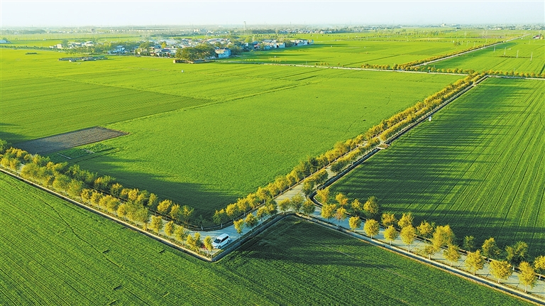 寒冬時(shí)節(jié),在許昌市建安區(qū)陳曹鄉(xiāng),高標(biāo)準(zhǔn)糧田示范園區(qū)中的麥壟和行道樹(shù)勾勒出美麗的圖案,給大地平添了幾分色彩和生機(jī)。牛書(shū)培 攝