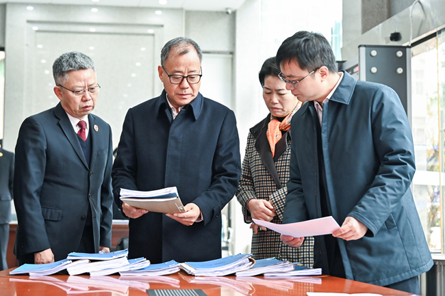 湖北省檢察院黨組書記、檢察長王守安(左二)實地查看咸寧市咸安區(qū)檢察院12309檢察服務(wù)中心。