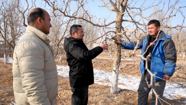圖爾蓀·圖尼亞孜在為村民講解果樹修剪技術(shù)。李哲清 攝