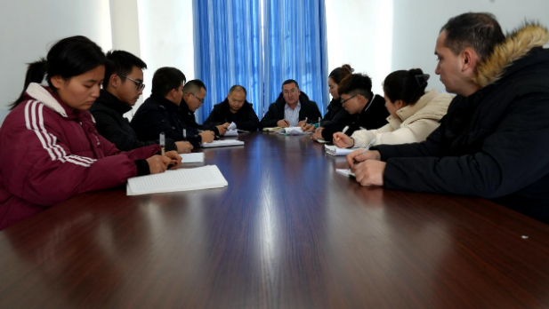 圖爾蓀·圖尼亞孜在晨會上安排一天工作。李哲清 攝