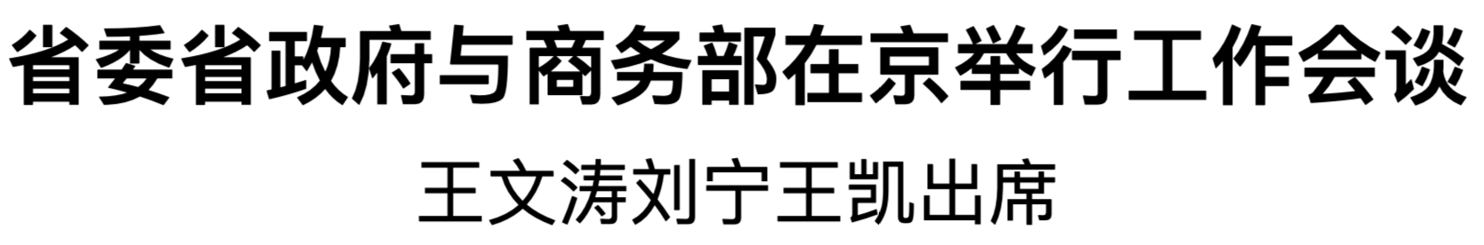 3月12日,省委、省政府與商務(wù)部在北京舉行工作會談,就深化拓展部省合作、進(jìn)一步促消費(fèi)穩(wěn)外貿(mào)擴(kuò)開放進(jìn)行深入交流。商務(wù)部黨組書記、部長王文濤,省委書記劉寧、省長王凱出席并講話。
