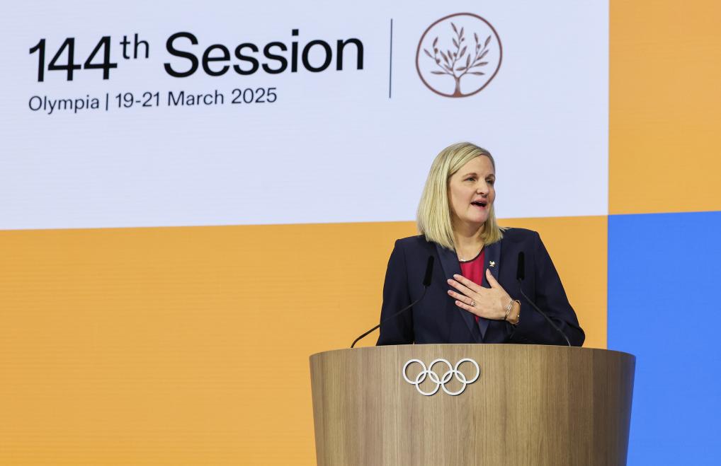 3月20日,考文垂在當選國際奧委會新一任主席后致辭。新華社記者 曹燦 攝