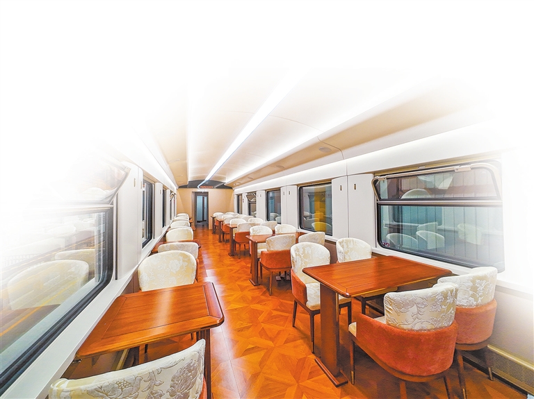 “中原鐵道·大河之南號”特色旅游列車餐車車廂。崔軒豪 攝