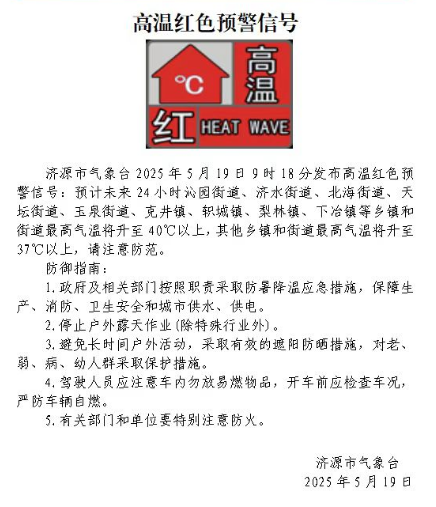 濟(jì)源市氣象臺發(fā)布高溫紅色預(yù)警信號