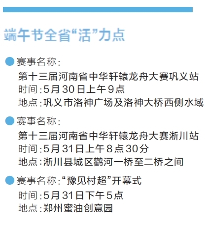 近幾年,隨著傳統(tǒng)文化的復(fù)興和各界對(duì)全民健身的重視,端午節(jié)也成了我省舉辦群眾性賽事的重要節(jié)點(diǎn)。據(jù)了解,今年的端午假期,除了賽龍舟外,火遍全國(guó)的“村超”聯(lián)賽也正式登陸河南,傳統(tǒng)體育與世界第一運(yùn)動(dòng)相交織,讓節(jié)日的氣氛“動(dòng)”感十足。