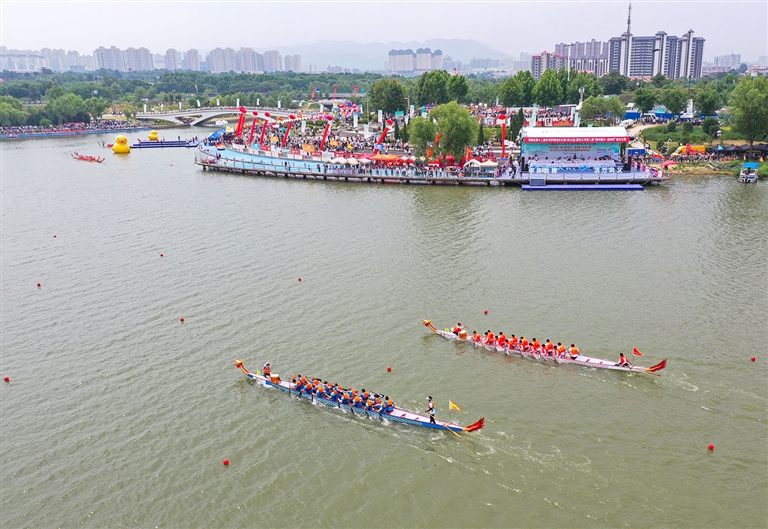 鞏義舉辦龍舟賽圍繞“體育+文旅”IP做文章。本報(bào)通訊員 雷乃益 攝