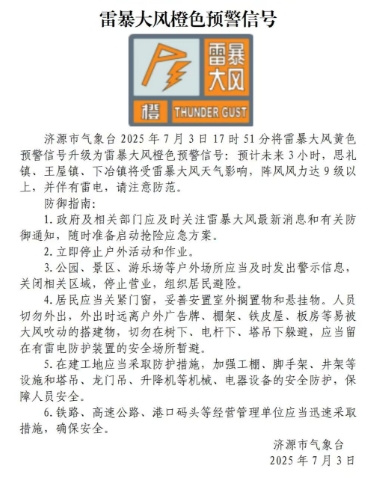 濟(jì)源市氣象臺(tái)發(fā)布雷暴大風(fēng)橙色預(yù)警信號(hào)