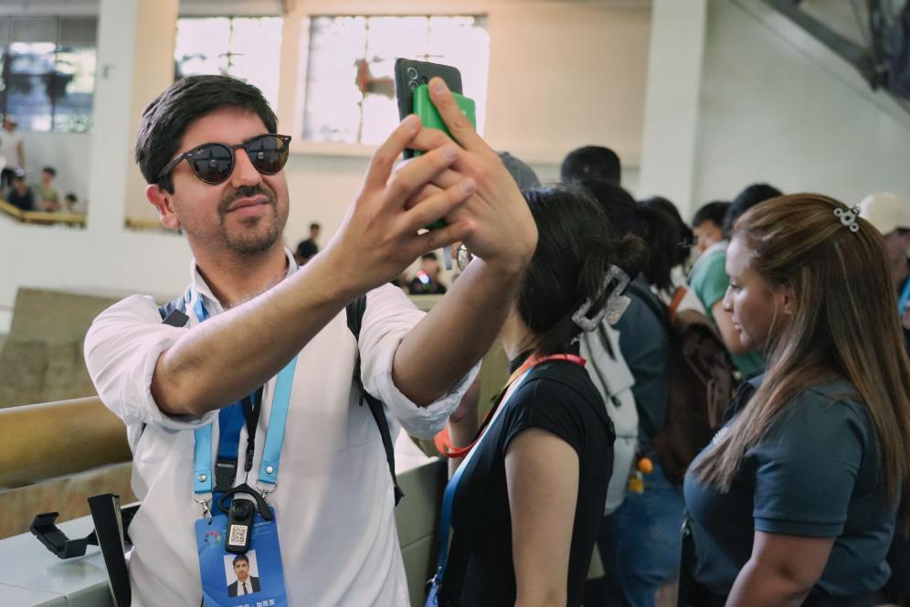 ??一路行來,哪怕只有幾分鐘,都會有拉美青年踏著步點(diǎn),用手機(jī)播放歡快舞曲。在中國朋友的推薦下,大家一同哼唱起了中文老歌《往事只能回味》的旋律。
