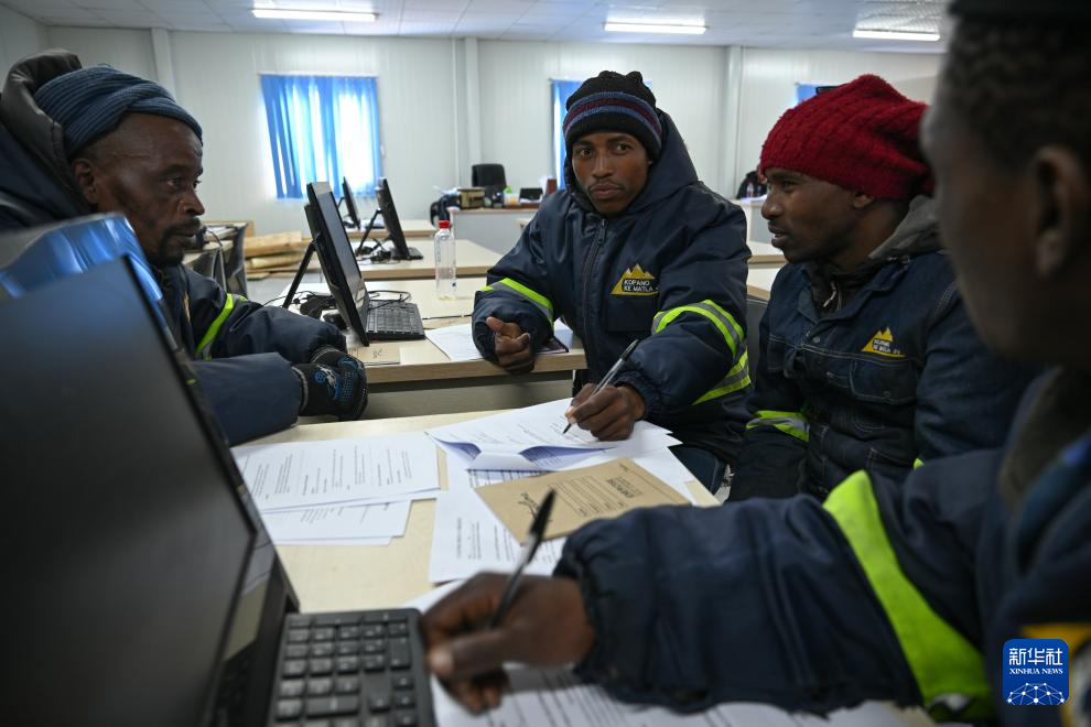 ??7月7日,在位于萊索托東部的莫霍特隆地區(qū),施工人員在波利哈利輸水隧洞建設(shè)項(xiàng)目培訓(xùn)中心參加技能培訓(xùn)。新華社記者 楊光 攝