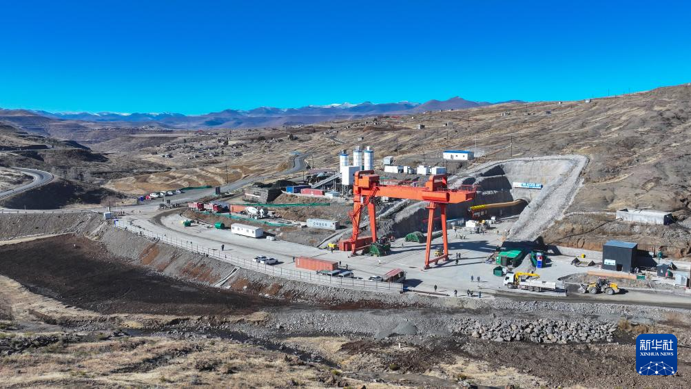 ??這是7月8日在位于萊索托北部萊里貝地區(qū)拍攝的波利哈利輸水隧洞建設(shè)項(xiàng)目出水口硬巖掘進(jìn)機(jī)施工支洞建設(shè)工地(無人機(jī)照片)。新華社記者 楊光 攝