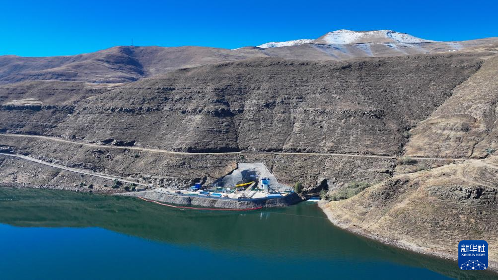 ??這是7月7日在位于萊索托東部莫霍特隆地區(qū)拍攝的波利哈利輸水隧洞建設(shè)項(xiàng)目進(jìn)水口硬巖掘進(jìn)機(jī)施工支洞建設(shè)工地(無人機(jī)照片)。新華社記者 楊光 攝