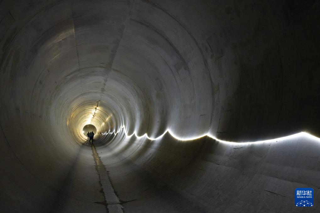 ??7月6日,在位于萊索托東部的莫霍特隆地區(qū),施工人員在波利哈利輸水隧洞建設(shè)項(xiàng)目進(jìn)水口管道內(nèi)巡查。新華社記者 楊光 攝