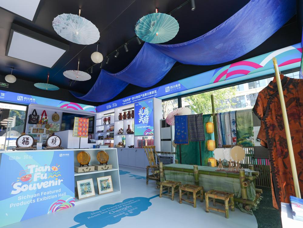 8月3日,在成都世運會運動員村A區(qū)拍攝的四川特色產(chǎn)品展示展銷館。新華社記者 王曦 攝