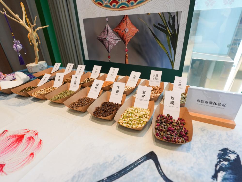 8月3日,在成都世運會運動員村A區(qū)中醫(yī)藥體驗館拍攝的自制香囊體驗區(qū)。新華社記者 王曦 攝