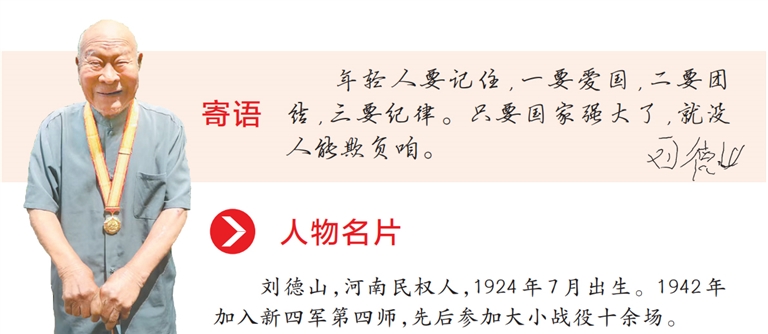 18歲的劉德山毅然參加新四軍,成為一名負責送信的通訊員,“那時候打仗缺人,咱就該上前線”。